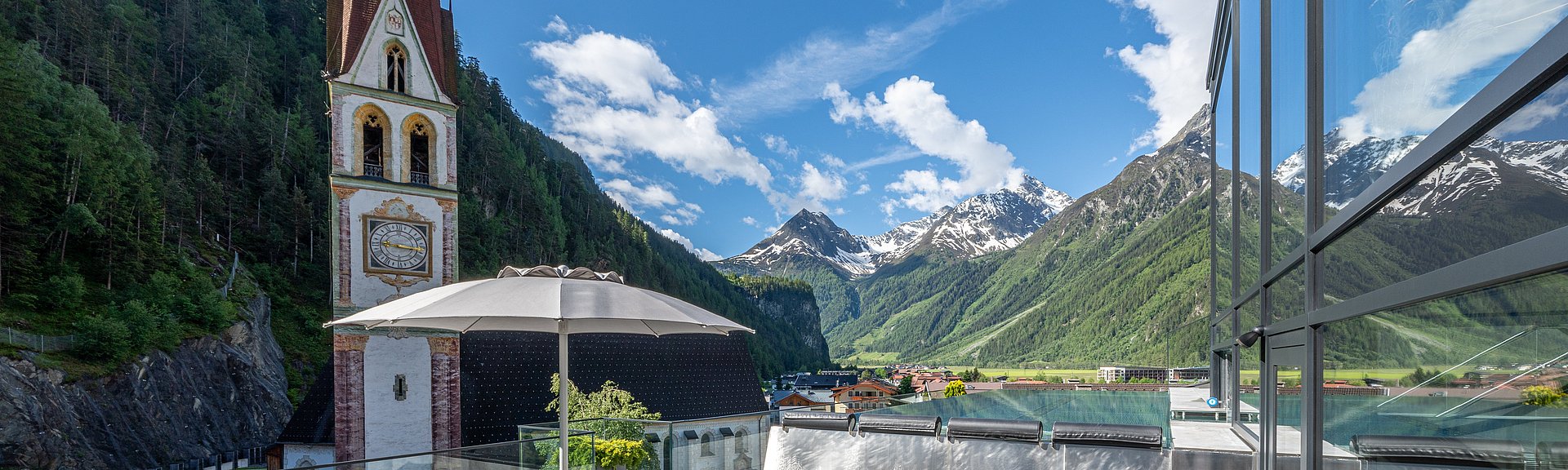 With a view of the breathtaking backdrop of the Ötztal mountains, our newly created oasis of relaxation and pure well-being is included in all our hotel services.